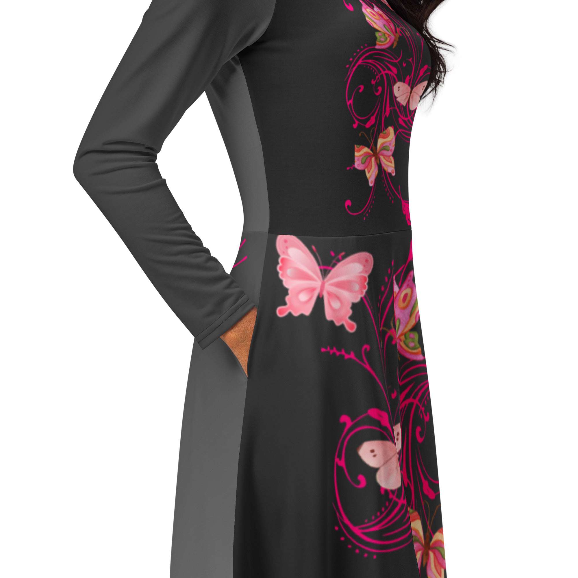 Meet your new favorite dress! Its soft fabric and flattering cut will ensure you feel comfortable and feminine all day long. Plus, the fitted waist and flared bottom part of the dress will accentuate the wearer’s naturally beautiful silhouette. The best part about the dress? It. Has. Pockets.