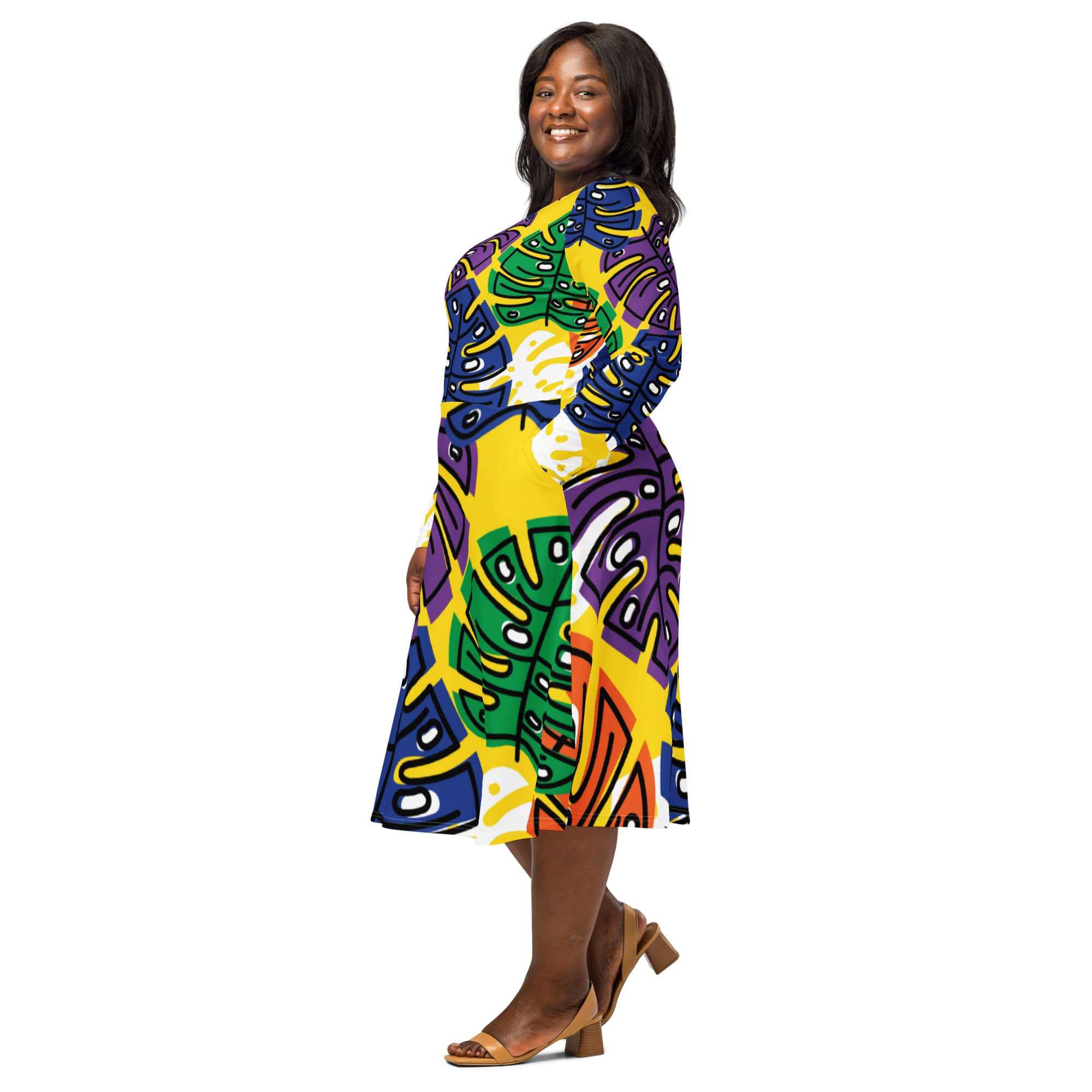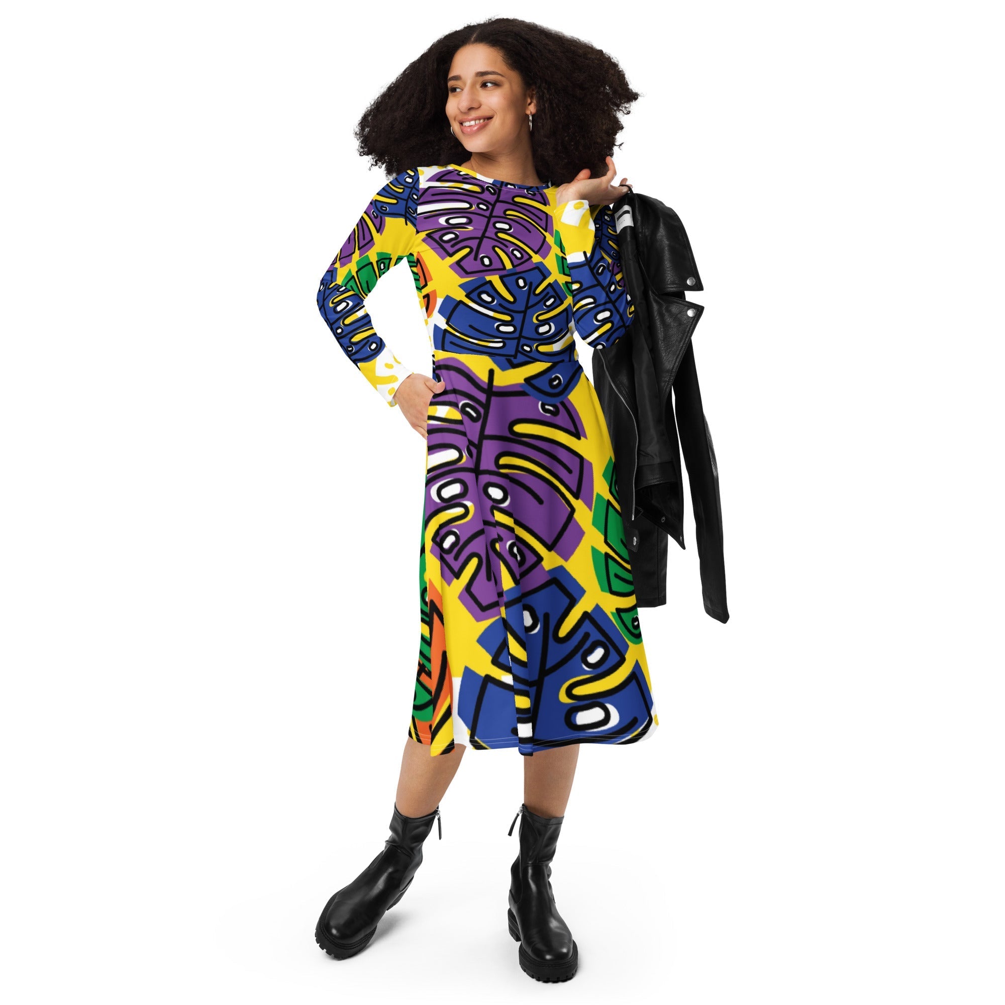 Scroll To TopScroll To Top All-Over Print Long Sleeve Midi Dress | 2XS–6XL Big Size